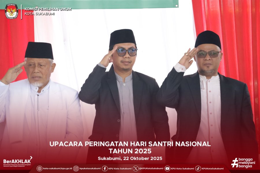 Kota Sukabumi, 22 Oktober 2025 – Komisi Pemilihan Umum (KPU) Kota Sukabumi turut hadir dalam kegiatan Upacara Peringatan Hari Santri Nasional Tahun 2025 yang diselenggarakan oleh Pemerintah Daerah Kota Sukabumi. Kegiatan ini dilaksanakan di Plaza Balai Kota Sukabumi dan diikuti oleh ratusan santri perwakilan dari berbagai pondok pesantren di wilayah Kota Sukabumi.