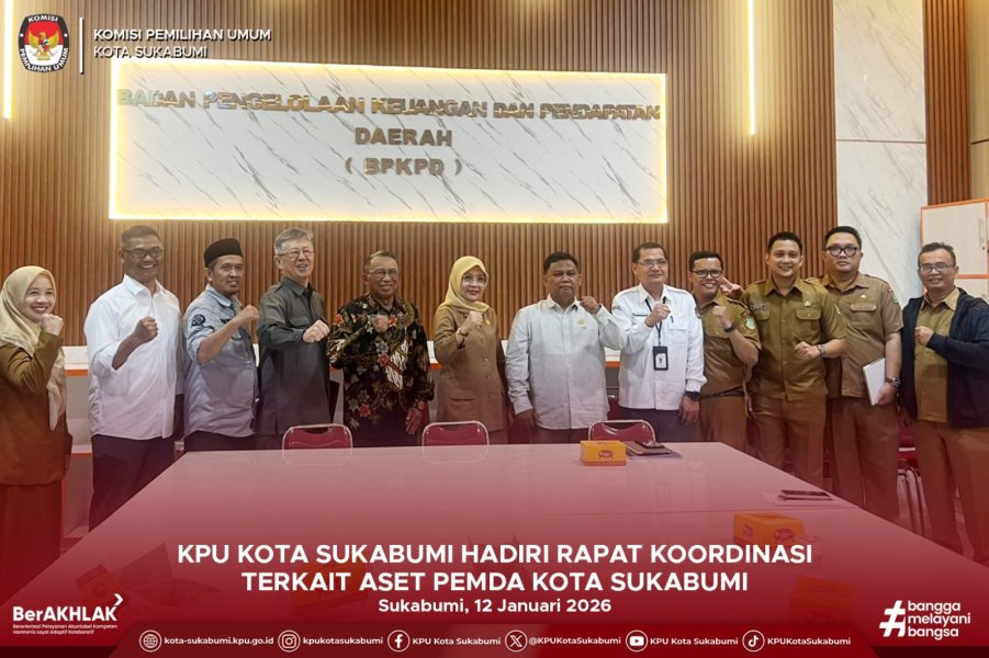 SUKABUMI — Komisi Pemilihan Umum (KPU) Kota Sukabumi mengikuti kegiatan Rapat Koordinasi Terkait Aset Pemerintah Daerah Kota Sukabumi yang dilaksanakan pada Senin, 12 Januari 2026. Kegiatan ini membahas berbagai isu strategis mengenai pengelolaan dan pemanfaatan aset milik Pemerintah Daerah Kota Sukabumi, salah satunya lahan yang saat ini digunakan oleh KPU Kota Sukabumi.