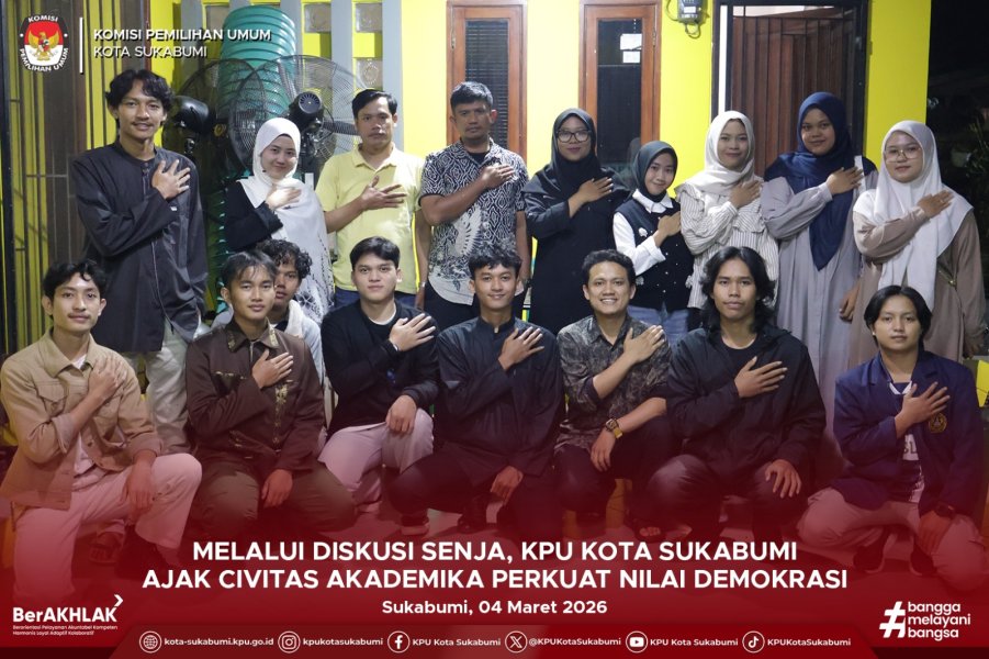 Melalui kegiatan Diskusi Senja ini, diharapkan terbangun sinergi yang semakin kuat antara Komisi Pemilihan Umum Kota Sukabumi dan kalangan perguruan tinggi dalam memperkuat demokrasi, khususnya melalui pengembangan pengetahuan dan partisipasi aktif generasi muda dalam kehidupan demokrasi di Indonesia.