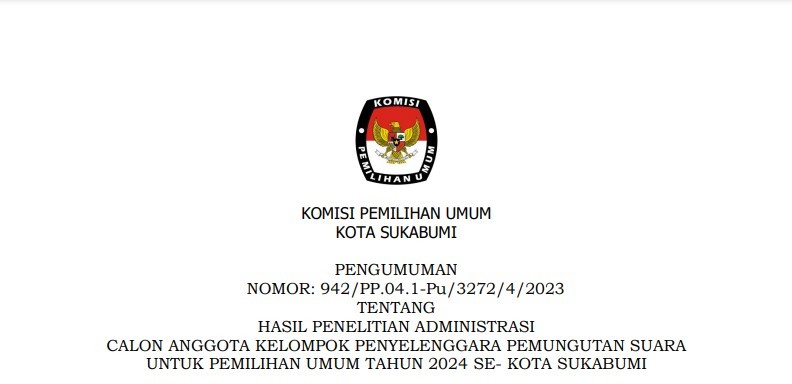 HASIL PENELITIAN ADMINISTRASI CALON ANGGOTA KELOMPOK PENYELENGGARA PEMUNGUTAN SUARA UNTUK PEMILIHAN UMUM TAHUN 2024 SE- KOTA SUKABUMI