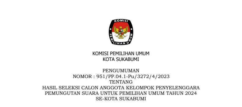 HASIL SELEKSI CALON ANGGOTA KELOMPOK PENYELENGGARA PEMUNGUTAN SUARA UNTUK PEMILIHAN UMUM TAHUN 2024 SE-KOTA SUKABUMI
