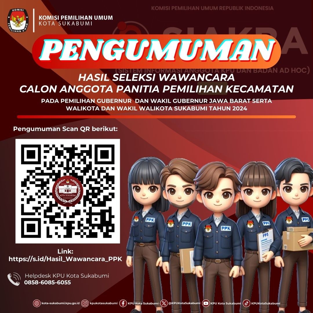 HASIL SELEKSI WAWANCARA CALON ANGGOTA PANITIA PEMILIHAN KECAMATAN UNTUK PEMILIHAN GUBERNUR DAN WAKIL GUBERNUR JAWA BARAT SERTA WALI KOTA DAN WAKIL WALI KOTA SUKABUMI TAHUN 2024