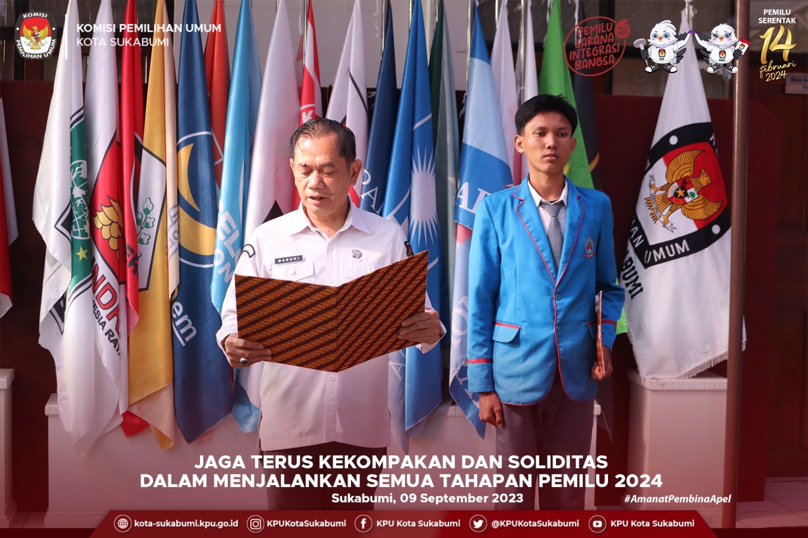 Komisi Pemilihan Umum (KPU) Kota Sukabumi menggelar apel rutin di lapangan apel. Dengan Pembina Basuki Apel Sekretaris KPU Kota Sukabumi