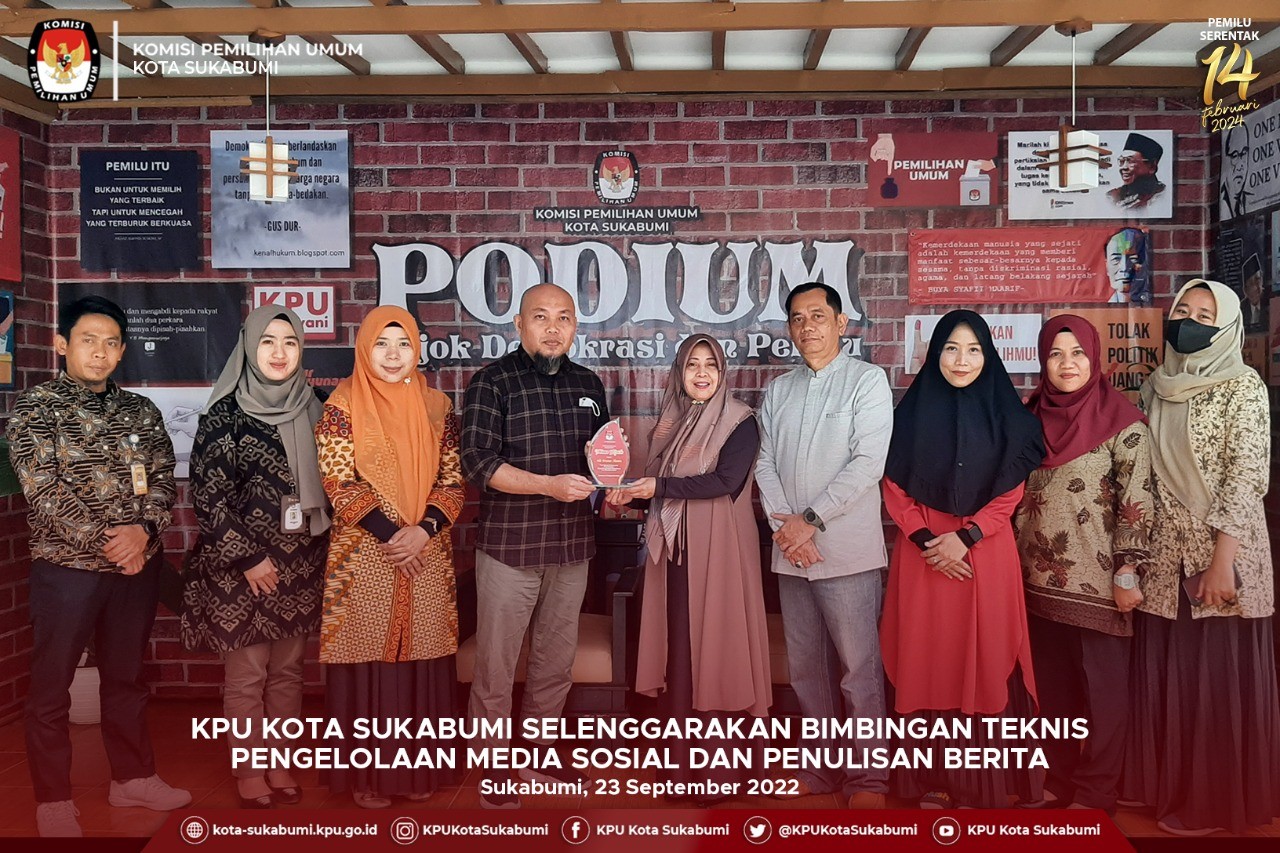 Dalam upaya meningkatkan literasi media sosial dan penulisan berita Komisi Pemilihan Umum (KPU) Kota Sukabumi Jawa Barat, menggelar Bimbingan Teknis (Bimtek) Pengelolaan Media Sosial dan Teknis Penulisan Berita. Agenda ini berlangsung di ruang pertemuan KPU Kota Sukabumi, Jumat (23/9/2022).