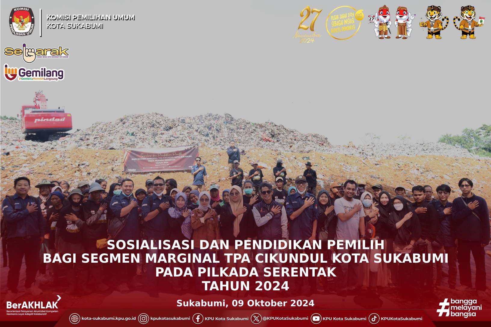 Sukabumi, 09 Oktober 2024 – Komisi Pemilihan Umum (KPU) Kota Sukabumi kembali menggelar kegiatan sosialisasi dan pendidikan pemilih, kali ini menyasar segmen marginal di Tempat Pembuangan Akhir (TPA) Cikundul. Kegiatan ini bertujuan untuk meningkatkan kesadaran politik dan partisipasi masyarakat marginal dalam Pilkada Serentak yang akan dilaksanakan pada 27 November 2024.