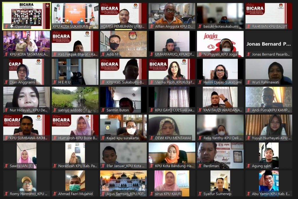 Sukabumi, 28/10/2021 – Dalam rangka berbagi pengalaman terkait inovasi Proyek Percontohan (pilot project) Daftar Pemilih Berkelanjutan yang di anugrahkan kepada KPU Kabupaten/Kota oleh Komisi Pemilihan Umum Republik Indonesia (KPU RI), Komisi Pemilihan Umum (KPU Kota Sukabumi) kembali mengadakan BICARA (Bincang Cerdas Demokrasi) seri – 10 secara daring dengan tema : Knowledge Sharing Inovasi Pemutakhiran Data Pemilih. Kegiatan tersebut menghadirkan 3 (tiga) narasumber hebat yang mendapatkan penghargaan Proyek Percontohan (pilot project) yaitu Siti Nurhayati (Kadiv. Perencanaan, Data dan Informasi KPU Kota Yogyakarta), Romy Harminto (Kadiv. Perencanaan, Data dan Informasi KPU Kota Makasar), dan Harlan Awaludin Kahar (Kadiv. Perencanaan, Data dan Informasi KPU Kota Sukabumi). Webinar tersebut dihadiri kurang lebih 150 (orang) peserta yang berasal dari berbagai daerah di Indonesia.