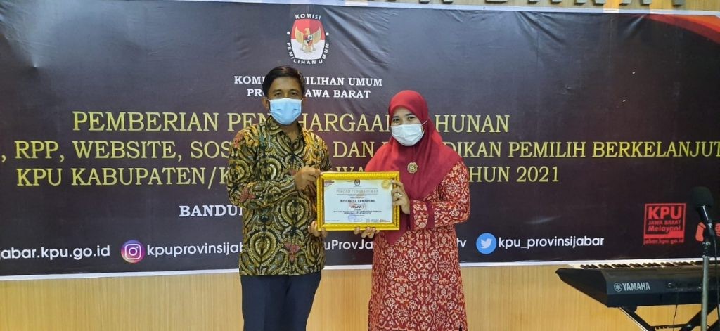 Penghargaan tahunan (annual award) dilaksanakan secara luring (Aula KPU Provinsi Jawa Barat) dan daring dengen peserta terdiri dari Anggota Divisi Sosialisasi, Pendidikan Pemilih, dan Partisipasi Masyarakat serta Kepala Sub Bagian Teknis dan Hupmas KPU Kabupaten/Kota Se – Jawa Barat.