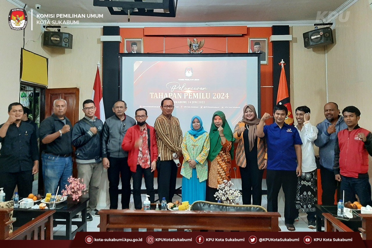 Sukabumi, 14 Juni 2022 – Komisi Pemilihan Umum Kota Sukabumi gelar kegiatan Nonton Bersama Peluncuran Tahapan Pemilu Serentak Tahun 2024 yang disiarkan langsung oleh KPU Republik Indonesia melalui Zoom Meeting dank anal KPU Republik Indonesia. Nonton Bersama diselenggarakan di kantor KPU Kota Sukabumi (Ruang Pertemuan) pada pukul 19.00 WIB tadi.