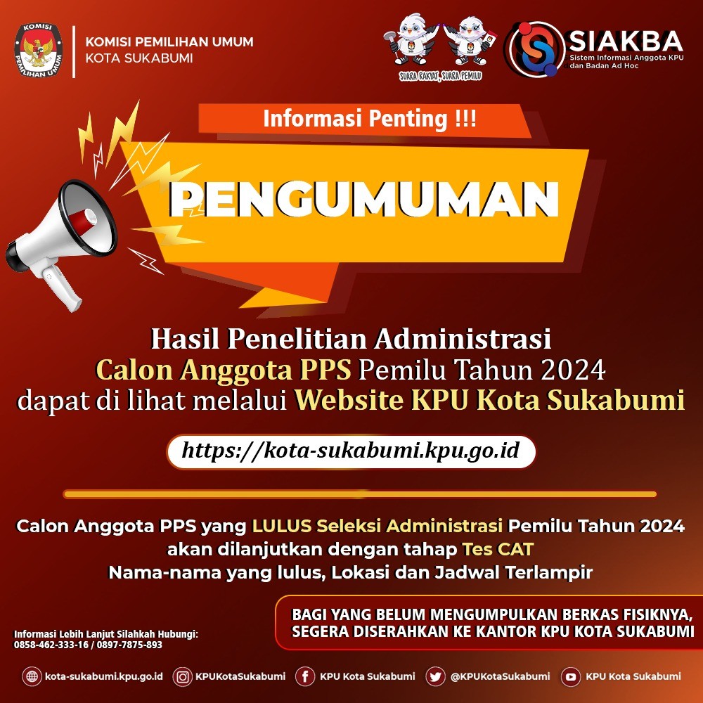 PENGUMUMAN HASIL SELEKSI TERTULIS (CAT) DAN PENGUMUMAN TES WAWANCARA CALON PPS PEMILU 2024