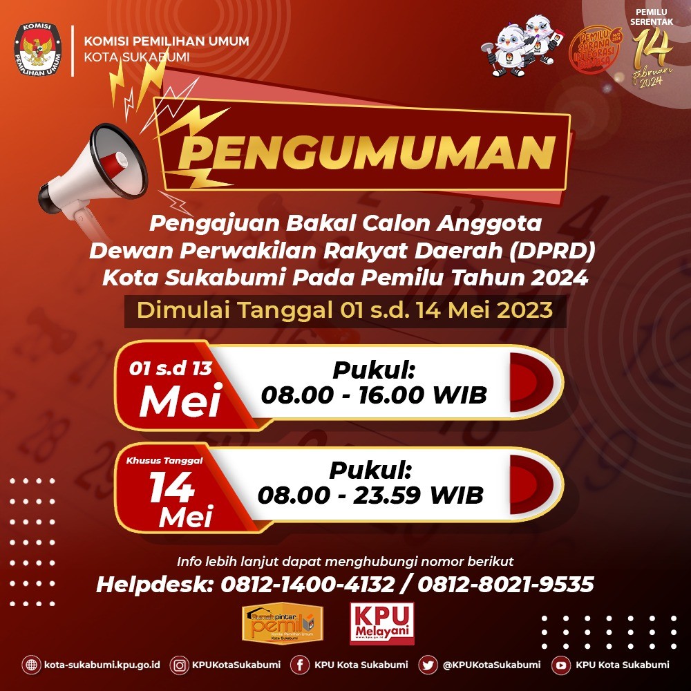 PENGUMUMAN PENGAJUAN BAKAL CALON ANGGOTA DEWAN PERWAKILAN DAERAH (DPRD) KOTA SUKABUMI PADA PEMILU TAHUN 2024