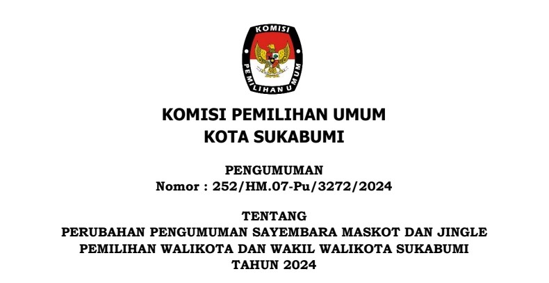 PERUBAHAN PENGUMUMAN SAYEMBARA MASKOT DAN JINGLE PEMILIHAN WALIKOTA DAN WAKIL WALIKOTA SUKABUMI TAHUN 2024