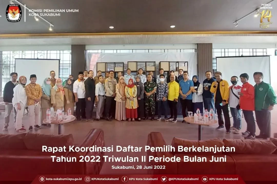 Sukabumi, 28 Juni 2022 – Komisi Pemilihan Umum Kota Sukabumi Gelar Rapat Koordinasi Daftar Pemilih Berkelanjutan Tahun 2022 Triwulan 2 Periode Bulan Juni bertempat di Hotel Balcony Sukabumi.