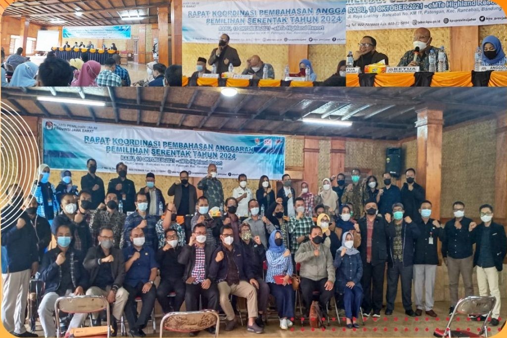 Rapat tersebut dihadiri langsung oleh Ilham Saputra (Ketua KPU Republik Indonesia), Ketua, beserta jajaran Anggota dan Sekretariat KPU Provinsi Jawa Barat, dan Ketua beserta Sekretaris KPU Kabupaten/Kota Se-Jawa Barat.