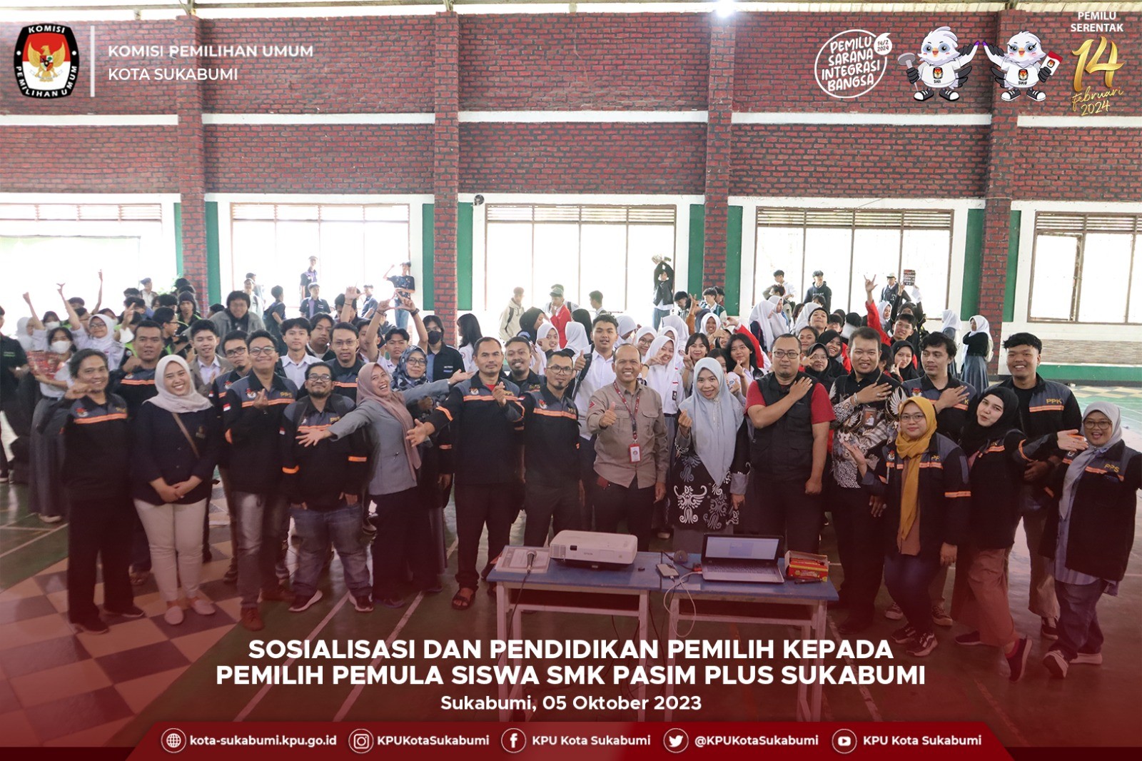 SUKABUMI, KPU Kota Sukabumi --- Pagi ini 05 Oktober 2023, SMK Pasim Plus Sukabumi menjadi saksi dari momen berharga dalam pendidikan kewarganegaraan para siswa mereka. Dua Anggota Komisi Pemilihan Umum (KPU) Kota Sukabumi, yaitu Ratna Istianah dan Agung Dugaswara, memberikan sosialisasi dan pendidikan pemilih kepada basis pemilih pemula di sekolah ini.
