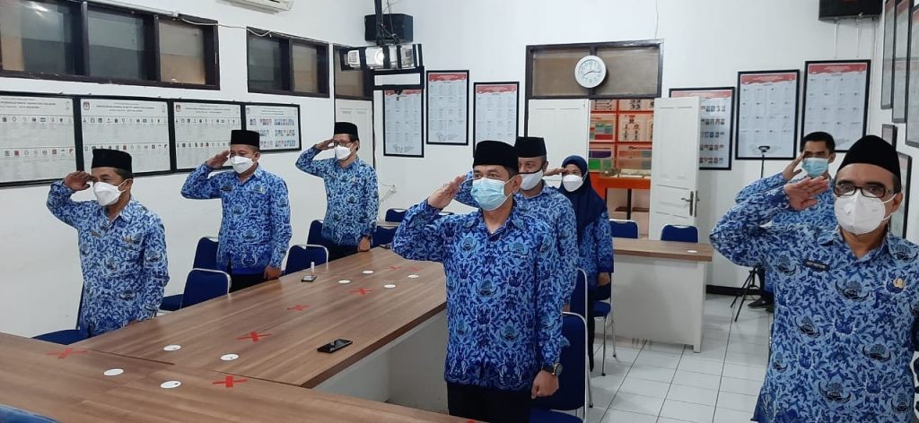Sukabumi, (10/11/2021) – Komisioner dan jajaran Sekretariat KPU Kota Sukabumi mengikuti Upacara Peringatan Hari Pahlawan secara daring melalui siaran Televisi Republik Indonesia (TVRI). Upacara tersebut bertujuan untuk mengenang dan menghormati jasa serta perjuangan para pahlawan dalam mempertahannkan kemerdekaan.